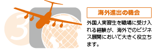 これからの人口減少社会において、グローバル人材の採用は企業にとって避けては通れない道です。これまでセイシンでは、技能実習生や高度人材と多数の外国人材を採用してまいりました。その経験を活かして採用育成支援、留学生就労支援を通じての派遣・業務請負、技能実習制度活用のサポートまで承ります。